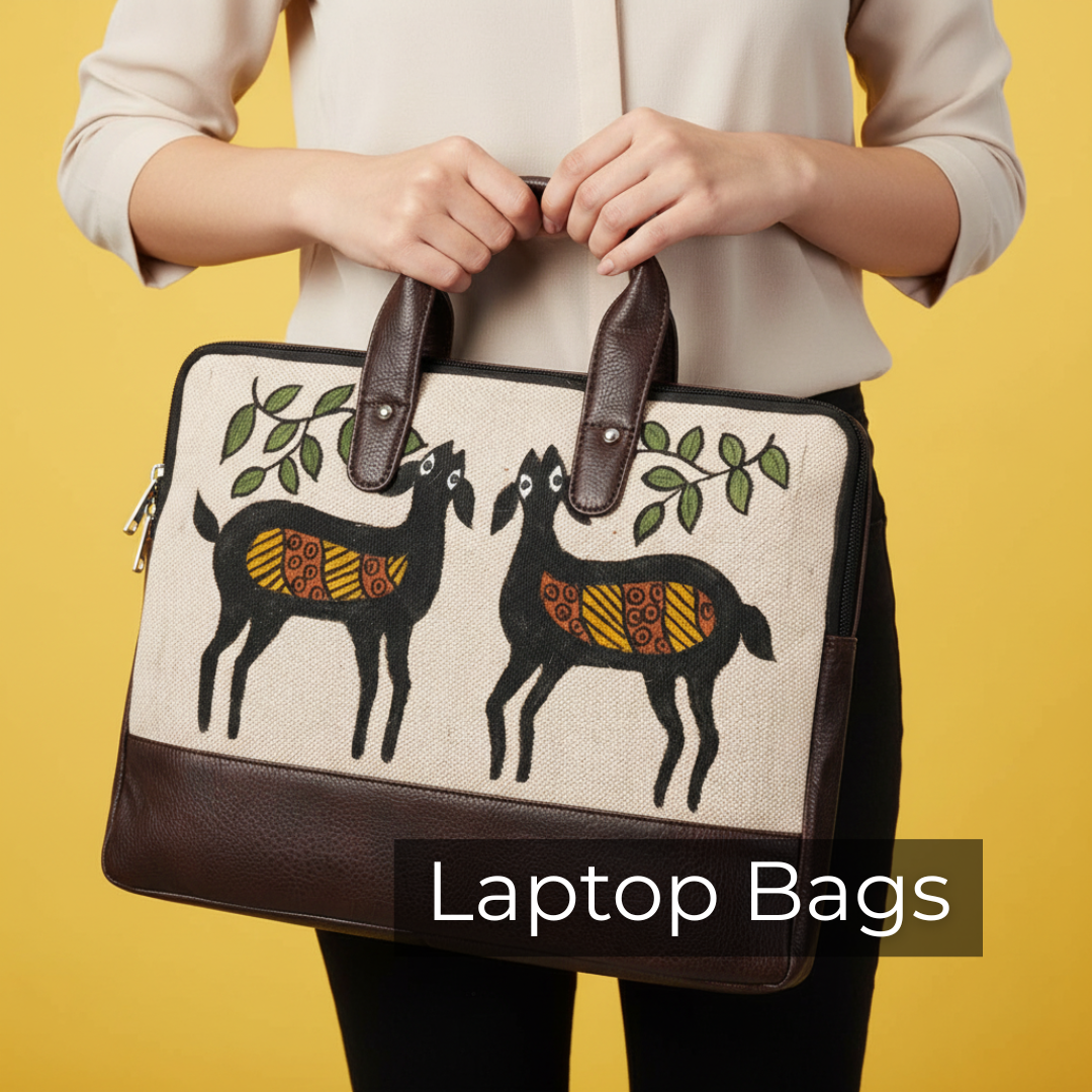 Handmade Jute Laptop Bag with Sohrai Painting | CTLB0003