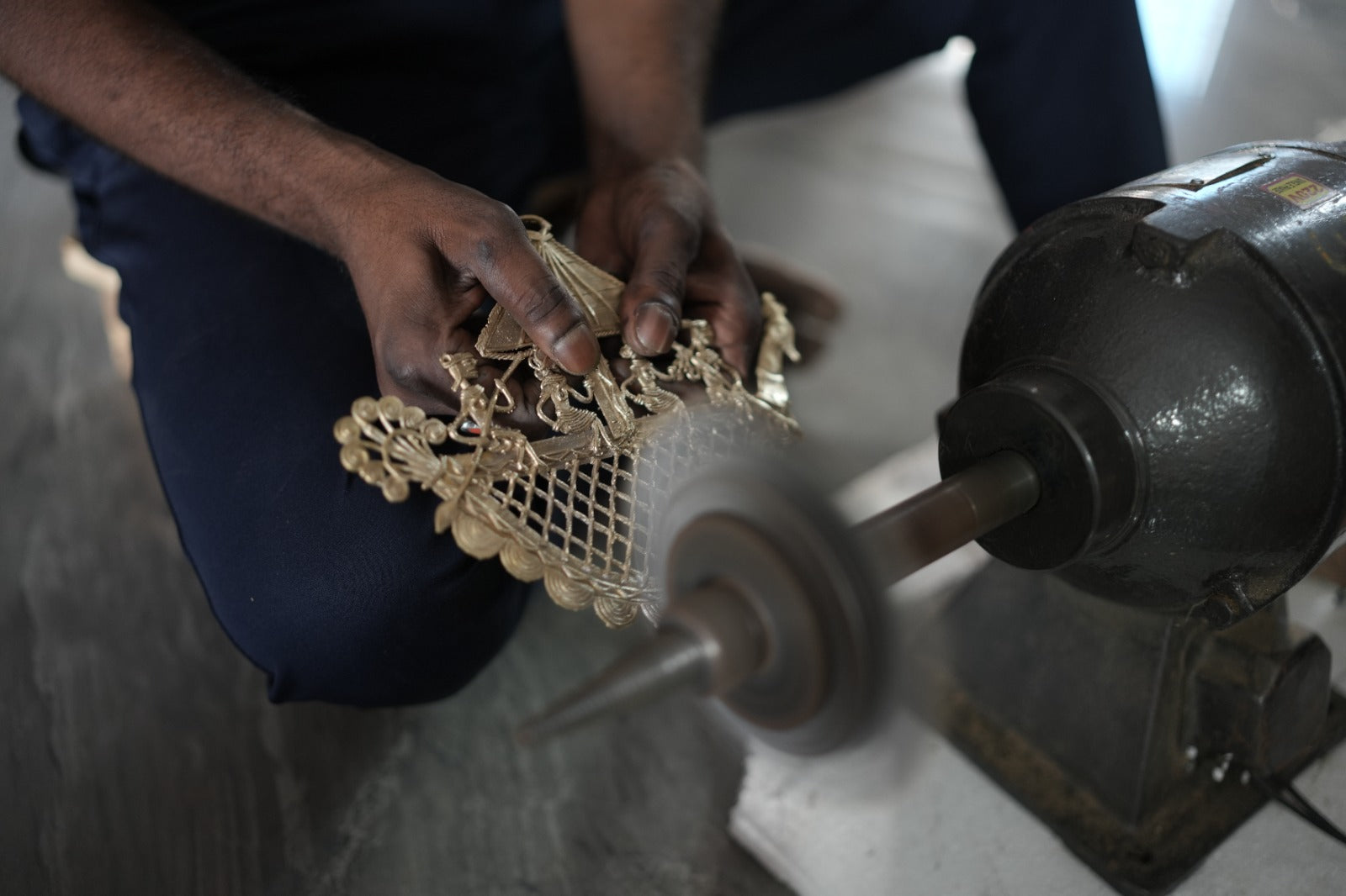 HANDMADE DHOKRA 2 FGR WITH WARLI PAINTING | DHPF0003