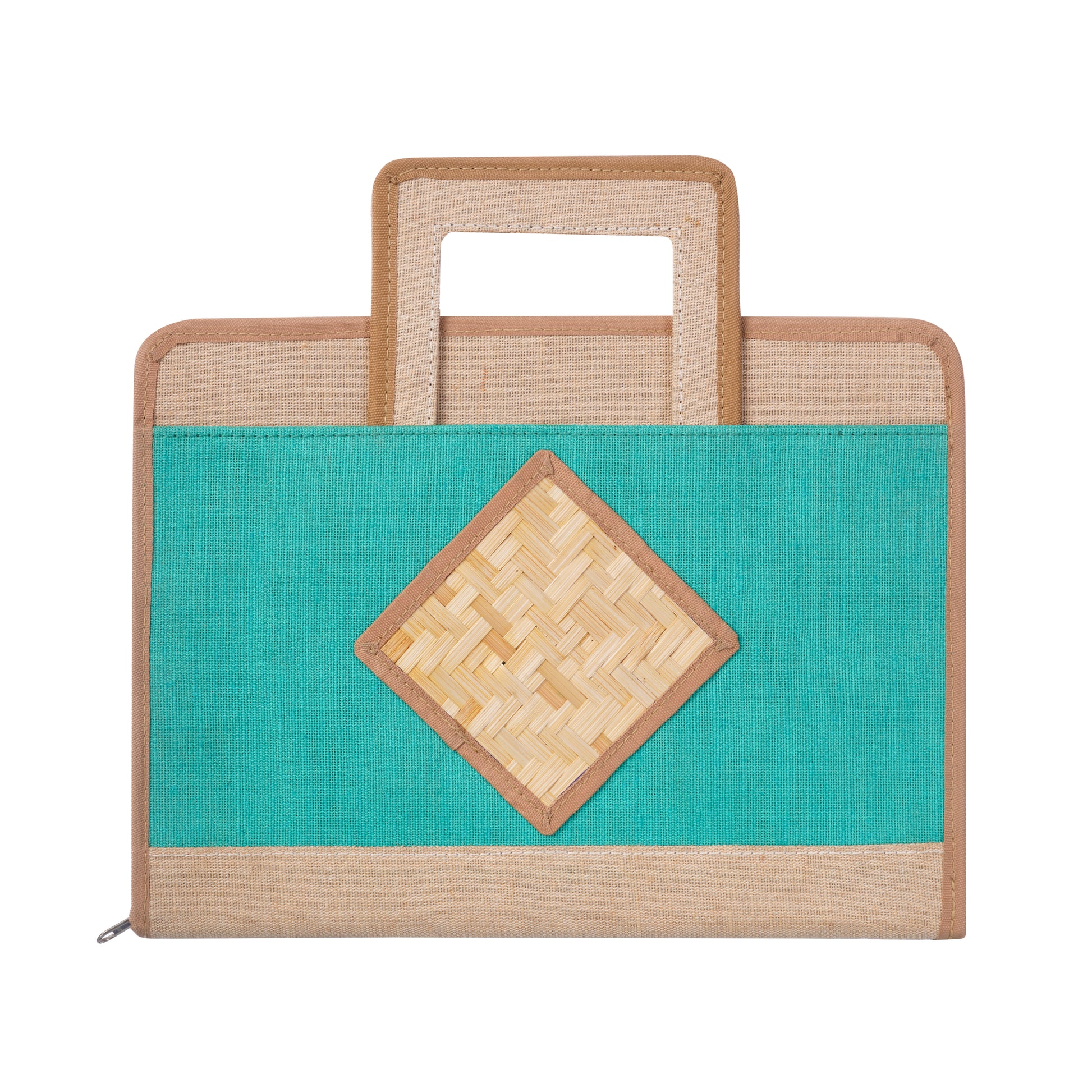 Organize your important documents in style with this Handmade Jute File Folder with Braided Carpet Finish. Designed for seminars, meetings, and daily office use, this folder blends eco-friendly materials with elegant detailing in golden and sky blue.